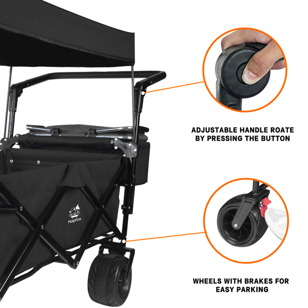 • 【EASY USE & PORTABILITY】The cart body requires no assembly. It can be folded or opened in just 3 seconds. The canopy can be installed as needed. After folding to a size of approximately 24.29"x29.92"x 6.89", only 6.9" thick and weighing about 36.74Lbs, you can simply pull it like a suitcase, saving a great deal of space