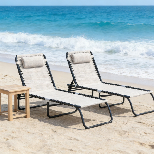 - 2 reclining lounge chairs with four backrest positions and two footrest positions
